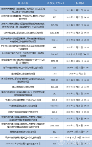 另附,12月即将开标的环卫项目,温馨提示:不要错过投标时间哦~